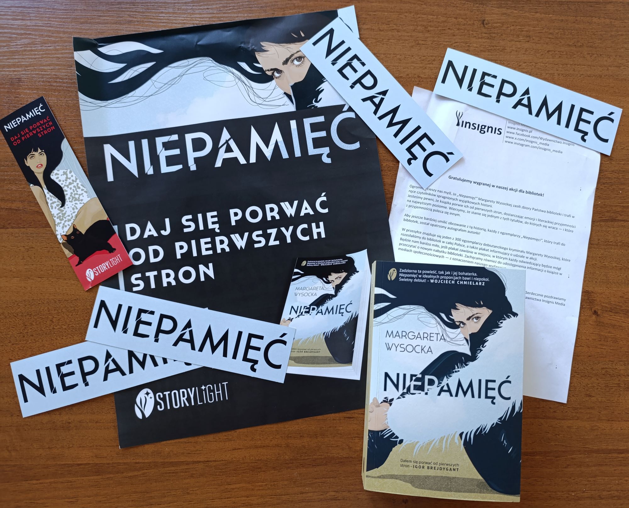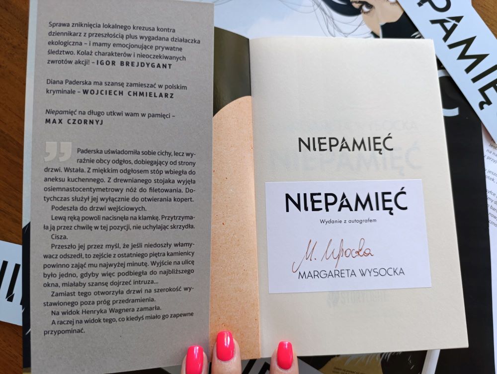 Dzięki akcji dla bibliotek zorganizowanej przez Wydawnictwo Insignis trafił do nas debiutancki kryminał „Niepamięć” autorstwa Margarety Wysockiej. Książka opatrzona jest autografem Autorki! Już niebawem książka zasili nasz księgozbiór i będzie dostępna dla Czytelników.